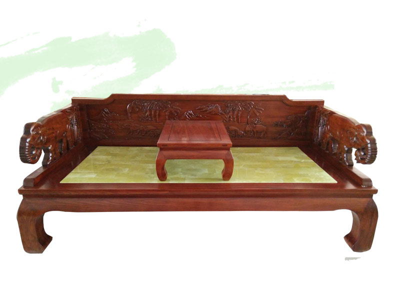 品名:玉石罗汉床(吉象 茶青色)